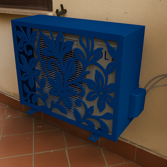 Το "Floral Flow" είναι ένα διακοσμητικό κάλυμμα εξωτερικής μονάδας A/C από κομμένη λαμαρίνα με καλλιτεχνικό φλοράλ μοτίβο .