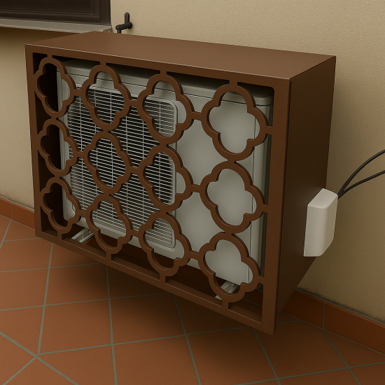 Το “Moorish Grid” (AC-06) είναι ένα κάλυμμα εξωτερικής μονάδας A/C με γεωμετρικό, συμμετρικό μοτίβο που θυμίζει παραδοσιακή μαυριτανική αρχιτεκτονική.