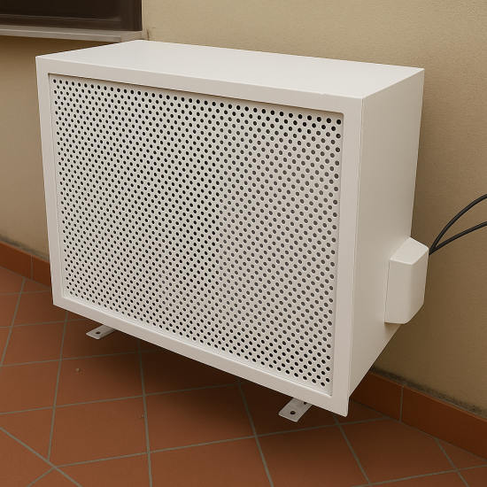 ο “Perfo Line” (AC-08) είναι ένα κάλυμμα εξωτερικής μονάδας A/C με minimal διάτρηση από στρογγυλές οπές, ιδανικό για αρχιτεκτονικά καθαρούς και κομψούς εξωτερικούς χώρους όπως βίλες, μοντέρνα σπίτια και ξενοδοχεία.