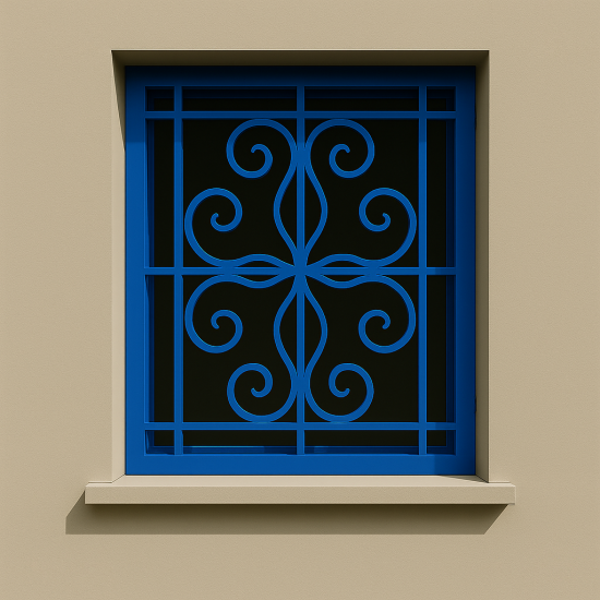 Το κάγκελο παραθύρου "Classic Scrolls" σε απόχρωση RAL 5010 συνδυάζει τη διαχρονική κομψότητα με την ασφάλεια. Το σχέδιο με καμπύλες γραμμές τύπου scroll προσδίδει ένα αρχοντικό και αρμονικό ύφος σε κάθε κατοικία, ιδανικό τόσο για παραδοσιακά όσο και για μοντέρνα σπίτια. Κατασκευάζεται από υψηλής αντοχής λαμαρίνα 5mm με κοπή laser και φινίρισμα ηλεκτροστατικής βαφής.
