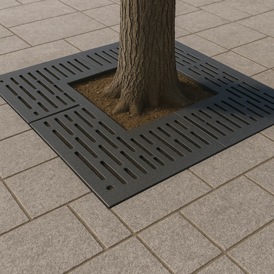 Τοποθετείται στο ίδιο επίπεδο με την πλακόστρωση, προσφέροντας προστασία ριζών, ασφάλεια διέλευσης και μοντέρνα εμφάνιση για κάθε έργο ανάπλασης.